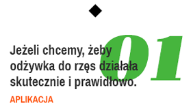 Jeżeli chcemy, żeby odżywka do rzęs działała skutecznie i prawidłowo, musimy nauczyć się ją aplikować. W większości tego typu produktów aplikatorem jest pędzelek (podobny mają eyelinery). Jego włosie jest przystosowane do tego, aby nabierać taką ilość płynu, która wystarczy do nałożenia na jedną powiekę. Pędzelkiem maluje się kreskę wzdłuż linii rzęs na powiekach górnych i dolnych; zaczynamy do wewnętrznych kącików oczu, a kończymy na zewnętrznych.